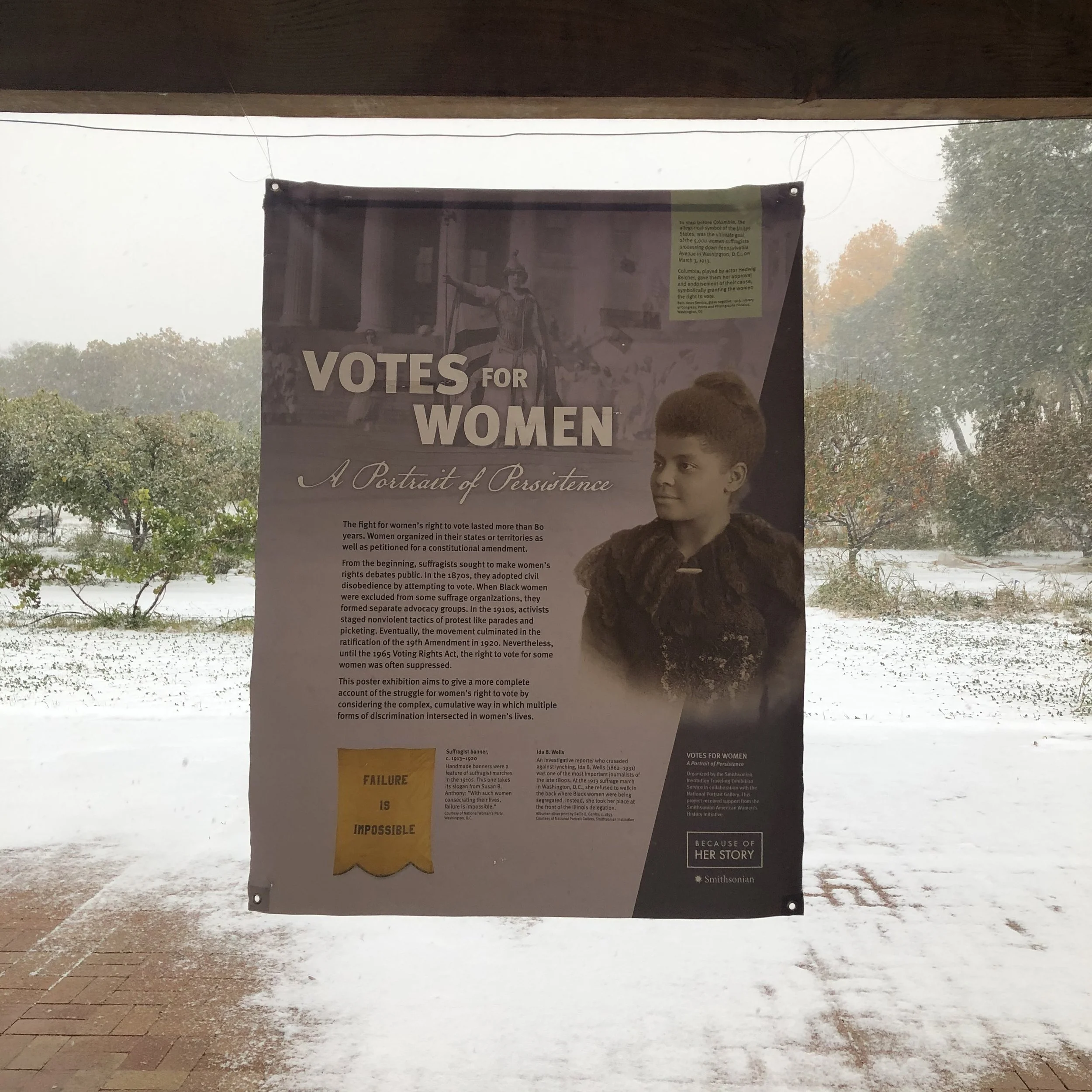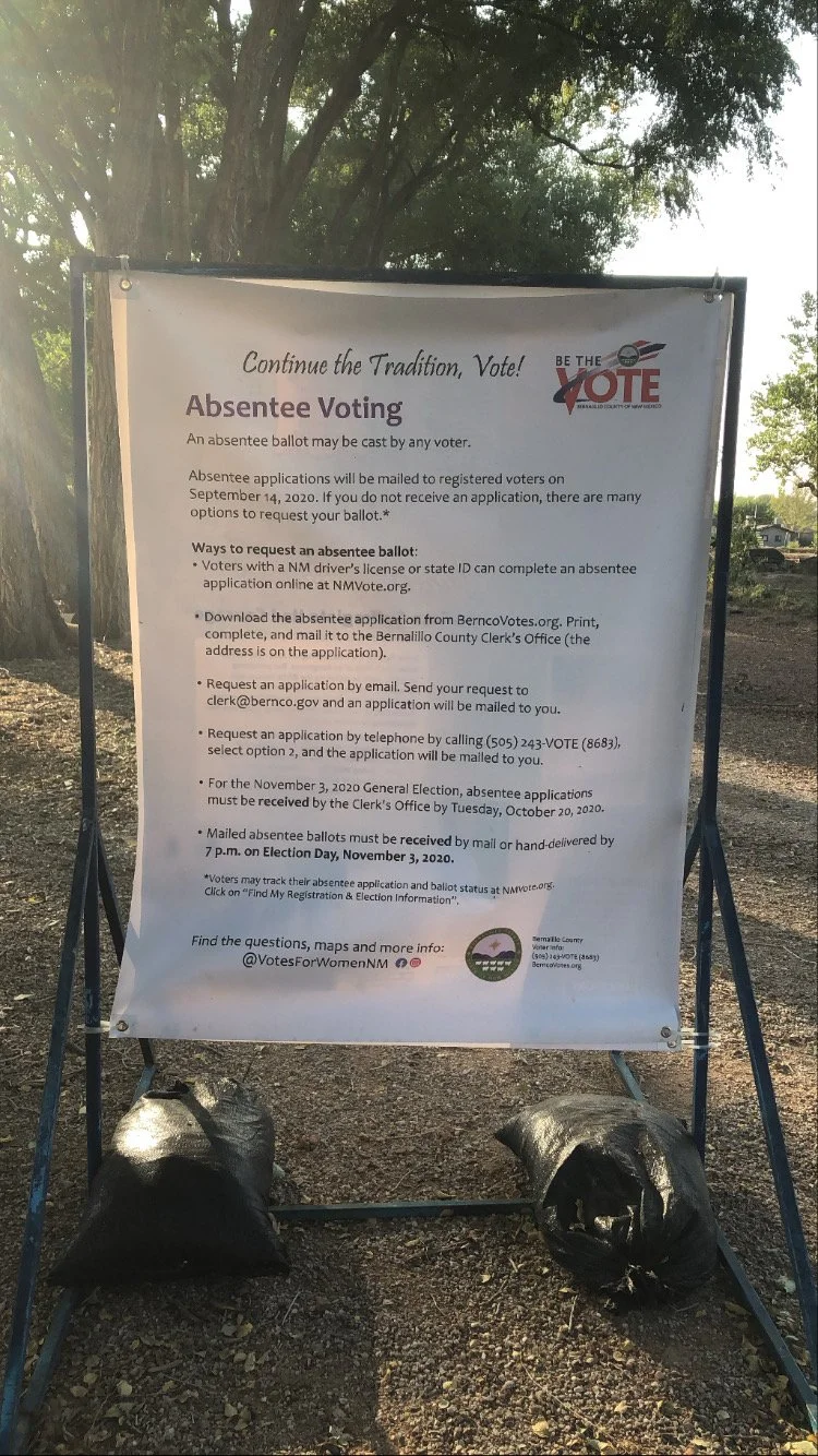 This 2020 exhibit was the Masters project of Danielle Griego and co-curated with Bernalillo Community Museum Director Emily Stovel. Pivoting due to the Covid-19 pandemic, Ms. Griego supplemented the Smithsonian SITES exhibit Votes for Women with up-to-date local information on voting in Bernalillo and Sandoval Counties. The exhibit was shown in its entirety at two outdoor sites, at Gutiérrez Hubbell House and in the town of Bernalillo. Larger single panels were exhibited throughout Bernalillo and Sandoval Counties in an innovative, large-scale public installation that educated on the history of women’s suffrage while providing timely information for local voters. The exhibit was supplemented with active social media campaigns.